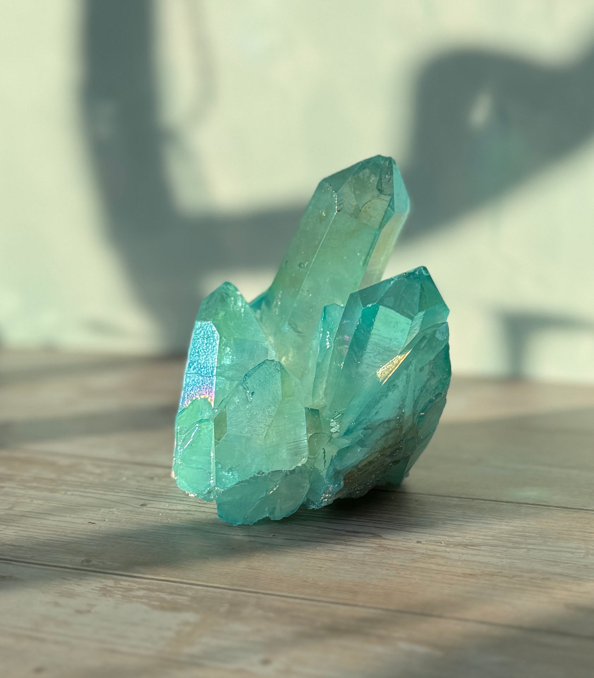 Aqua Aura Quartz is a high-vibration crystal known for its uplifting, calming energy and spiritual clarity. This cluster amplifies energy, promotes communication, and enhances intuition, making it perfect for meditation, energy work, or display in your space.