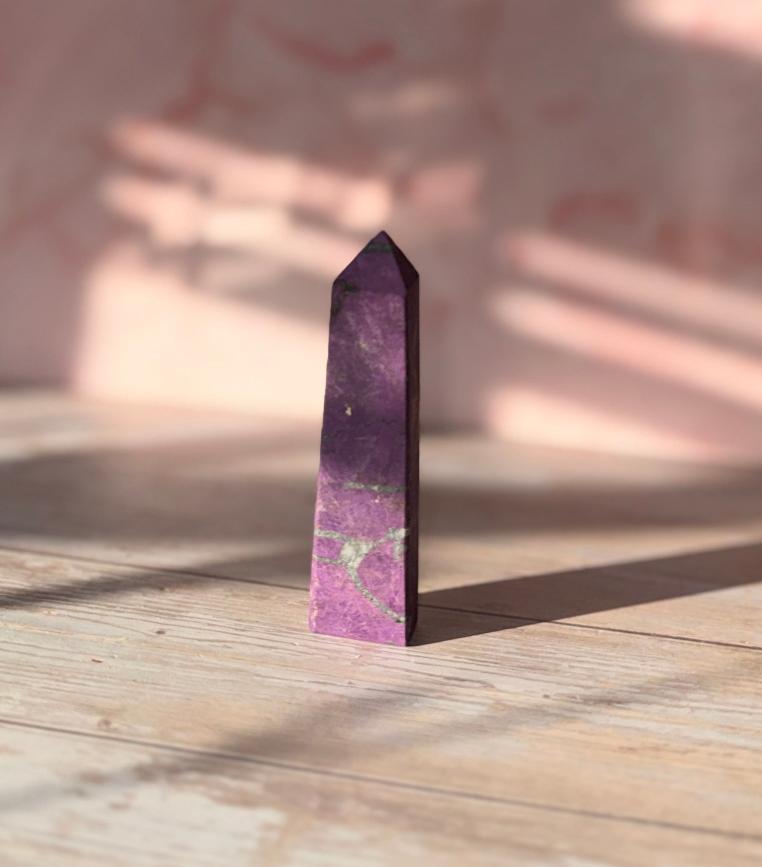Purpurite is a powerful stone of freedom, intuition, and spiritual independence. This tower supports releasing limitations, strengthening inner guidance, and stepping confidently into your authentic truth. A beautiful ally for meditation, clarity, and energetic empowerment.