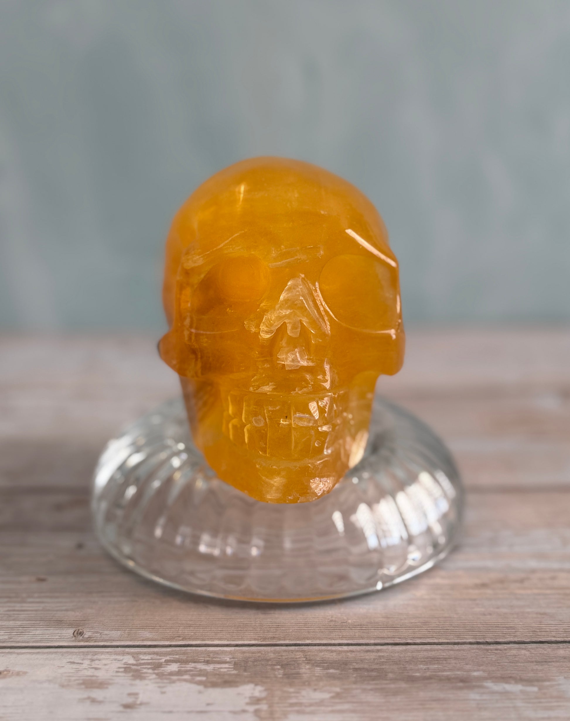 This Yellow Fluorite Skull carries bright, focused energy that supports mental clarity, confidence, and personal power. Carved into a skull, it symbolizes wisdom, conscious awareness, and the clearing of mental fog—making it a powerful piece for intention setting and focused work.